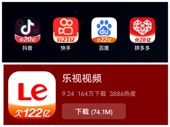 但在博得眼球这件事情上,他们还是不如乐视。在更新后图标上,乐视写下了“欠122亿”,分文不花,碾压所有对手。