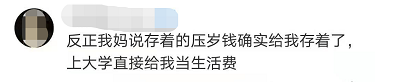 还有一些网友表示,妈妈虽然把自己的压岁钱收走了,但是会帮忙存起来,用于将来的学费和生活费。