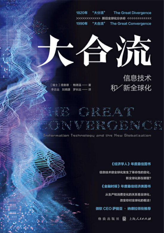 1990年前后,由于信息技术崛起,产品从设计到生产越来越模块化,各种流程可以在地理上分离开。信息技术让知识流动成为可能,让发达国家的先进技术和发展中国家便宜工人的结合变得可能。这本书标题的“大合流”即指:这一时期发展中国家在全球经济收入所占比例急剧增加,而发达国家在全球经济收入所占比例大幅减少所形成的新全球化浪潮。