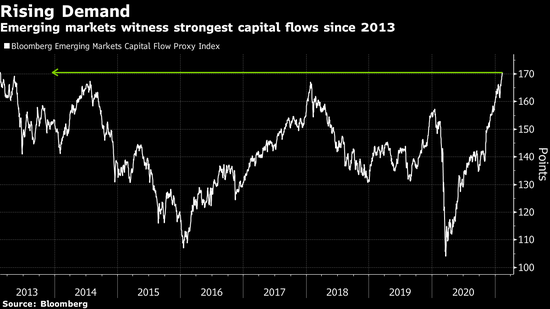自去年3月份以来,受八年来最强劲的资本流入刺激,发展中国家资产一路攀升。因面对央行流动性泛滥和负收益率证券充斥的世界,投资者争相寻求更高的收益率。尽管宽松政策环境不会很快消失,但无风险利率的攀升却引发了人们对市场上涨无法持续的担忧。