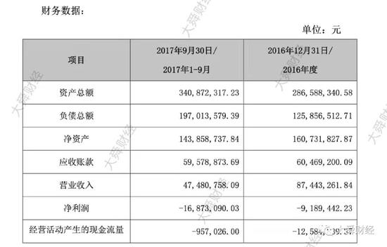 财务数据显示,科捷机器人公司2016年度实现营业收入8744万元,净利润亏损919 万元,2017年1-9月份实现营业收入4748万元,净利润亏损1687万元。
