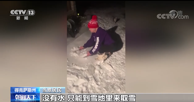 得克萨斯州 当地居民:这就是我们正在做的事,没有水,只能到雪地里来取雪,然后融化成水用。