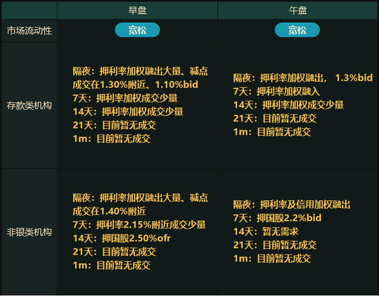 今日市场流动性宽松。午后非银类机构隔夜资金押利率及信用加权融出;NCD方面,1M期限国股TRD在 2.28%;一级方面,1Y期限国股发行在 3.15%。
