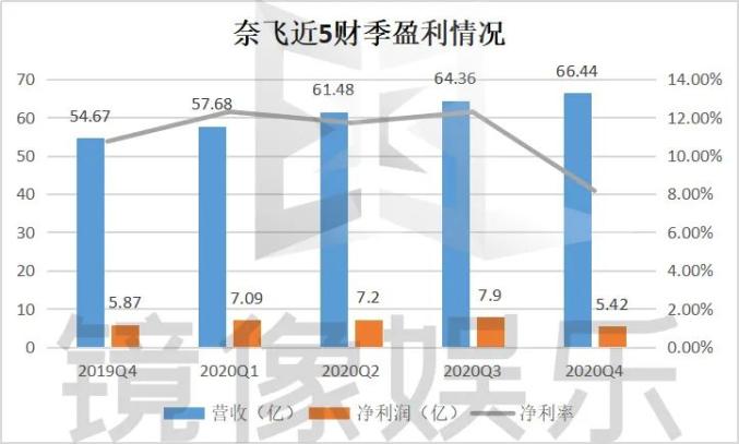 第四季度,奈飞的营业收入为66.44亿美元,同比增长21.5%。净利润为5.42亿美元,同比下降7.7%,环比下降31.39%,未达到华尔街预期。奈飞股价盘后大涨12%,每股1.30美元降至每股1.19美元。