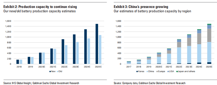高盛注意到,全球主要的电池制造商正在积极地有意义地提高产能。