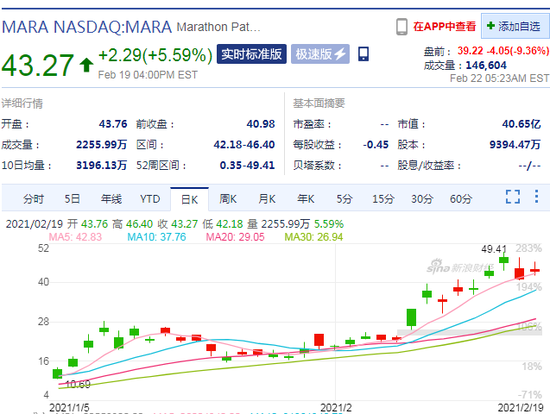 MARA,豪买矿机 剑指北美矿业头把交椅,2月份涨幅超1倍。马拉松专利集团是一家挖掘加密货币的数字资产技术公司,专注于区块链生态系统和加密数字资产(比特币、以太坊等)的生成。目前在魁北克经营一家大型矿场,并计划未来增加更多挖矿设施。去年三季度马拉松专利集团宣布购买了10,000台蚂蚁ASIC矿机S-19 Pro,这是其致力成为北美最大挖矿公司计划的一部分。