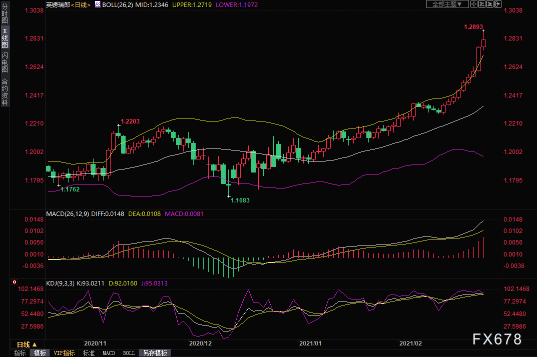 周三(2月24日)亚洲时段,英镑兑美元快速拉升,短线一度飙升逾100点,刷新近三年新高至1.4237,短线并未突发基本面消息刺激,交易员预计是汇价的持续上涨触发了一些英镑空单的止损盘;之前的基本面利多因素主要是英国快速推进疫苗接种以及计划放松对经济活动的封锁限制,让投资者感到鼓舞。