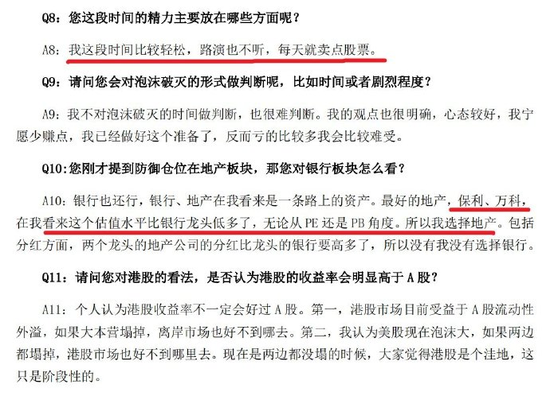 而谈到近期的操作,董承非坦言“比较轻松,路演也不听,每天就卖点股票”,宁愿少赚点,也不想亏得难受。而对于地产板块的防御仓位,他认为最好的地产公司估值水平甚至低于银行。