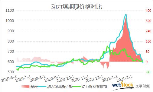今日港口现货价格延续弱势,秦皇岛港鄂尔多斯Q5500动力煤价格再跌12元至588元/吨,创逾5个月新低。相比之下,期货市场明显给力,郑煤期价继续走升,基差则在昨日由正转负之后,今日降至-22.2元/吨,刷新2020年12月14日以来新低。