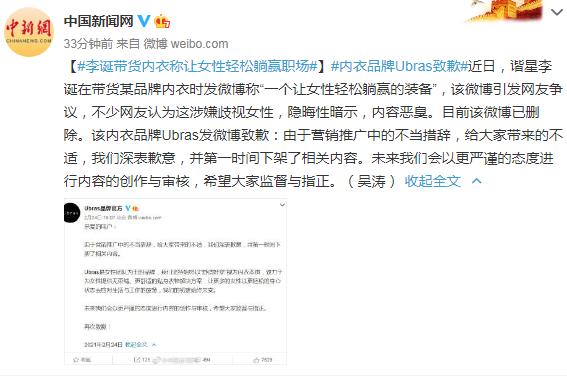 近日,谐星李诞在带货某品牌内衣时发微博称“一个让女性轻松躺赢的装备”,该微博引发网友争议,不少网友认为这涉嫌歧视女性,隐晦性暗示,内容恶臭。目前该微博已删除。该内衣品牌Ubras发微博致歉:由于营销推广中的不当措辞,给大家带来的不适,我们深表歉意,并第一时间下架了相关内容。未来我们会以更严谨的态度进行内容的创作与审核,希望大家监督与指正。(吴涛)
