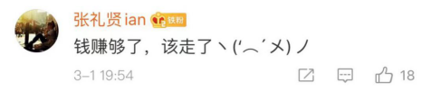 也有网友对此表示,钱赚够了,就该走了。