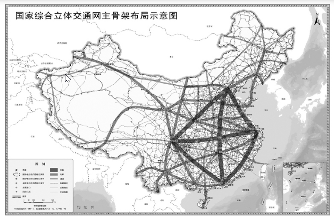 未来中国将按照极、组群、组团之间交通联系强度,打造由主轴、走廊、通道组成的国家综合立体交通网主骨架。