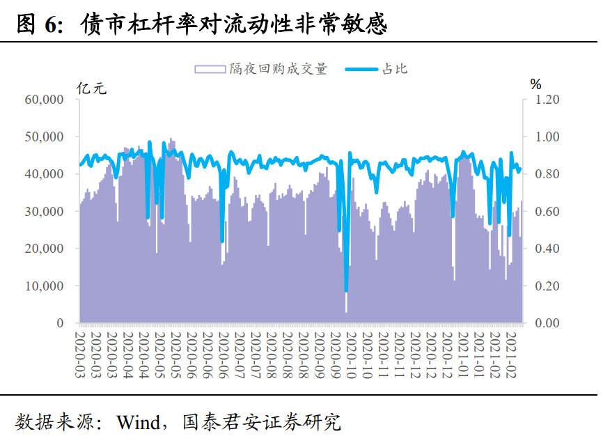 货币政策重心已经切换到金融防风险。事实上,以2020年4月份,公开市场操作暂停为起始,货币政策的重心已经开始向金融防风险切换。其后,央行也多次做了前瞻指引,比如8月6日,央行公布了2020Q2货币政策执行报告,另辟专栏4,具体阐述了对低利率政策的反思,并强调了维持货币政策常态化空间的诉求。2021年2月8日公布的2020Q4货币政策执行报告,则强调了加杠杆抬头可能成为重要的潜在风险,并首次聚焦居民经营杠杆过高的风险。