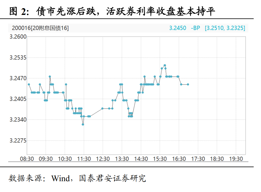 “利率会回升”表态下,股市跳水,债市先涨后跌。周二国新办新闻发布会上,银保监会向市场传达了“利率会回升”的相关表态。受此影响,股市盘中跳水,上证综指从微涨转为收盘跌1.21%。债市先涨后跌,活跃券收盘利率基本持平于前一交易日。