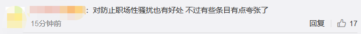 也有人表示,这在一定程度上避免了职场性骚扰。 “我觉得大大方方规定出来挺好的,职场应该有职业素养,就应该有合理的距离和界限。”有网友坦言,自己所在的职场中有领导经常在工作场合或工作餐时开“黄腔”,下属碍于面子还要符合或者假笑。这样的规定一出,在一定程度上或许可以避免职场性骚扰。
