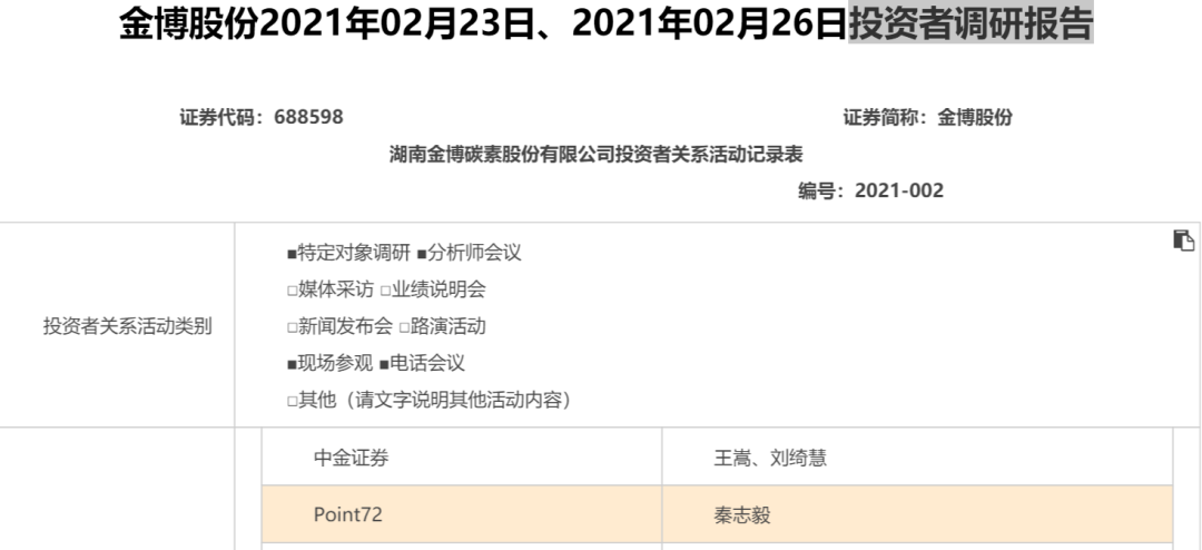 比如,金博股份近期披露的投资者调研报告显示,2月23日,POINT72前去调研了这家公司,一同前往的还有中金、国泰君安、海通、中信等多家大型券商。