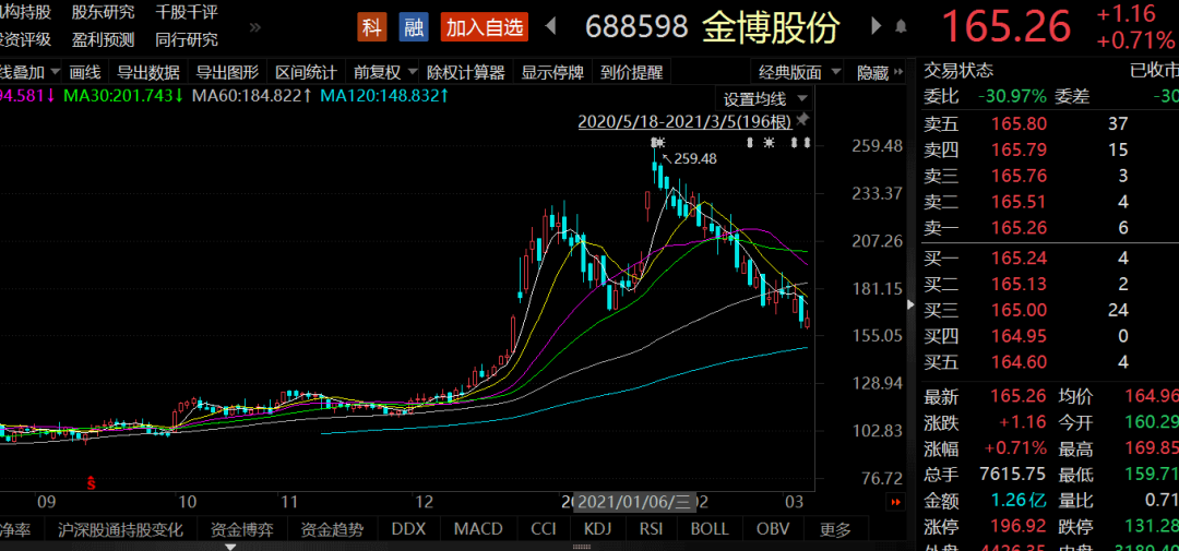 公告发布当天,金博股份股价涨超14%。2月25日,公司发布2020年业绩快报,去年公司实现营收4.26亿元,同比增78.05%;实现归母净利润1.69亿元,同比增117.03%。不过,随着光伏板块整体开始调整,金博股份的股价2月以来也迅速下调。