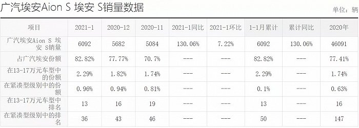 广汽新能源从起步就拥有一定的优势,广汽埃安(Aion)系列已经初步成军,S在2020年已经高达46000量,要知道这个是独立品牌。