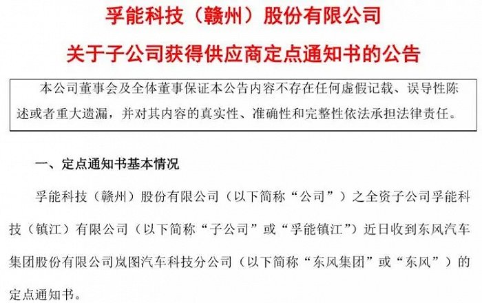 2020年8月25日,孚能科技的一纸公告,揭开了东风的新能源汽车的原始项目。