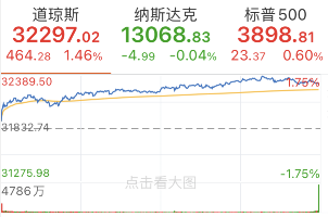 3月11日,美股三大指数收盘涨跌不一,道指涨464点,涨幅1.46%,创下收盘历史新高;标普500指数涨0.6%;纳指小幅收跌0.04%。