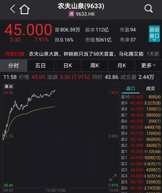 农夫山泉的大涨,使得其创始人钟睒睒的身价急剧上升50美元,重返中国首富的宝座。