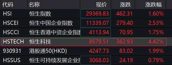 11日,港股“核心资产”在A股高昂的情绪下,也大幅反弹。恒生科技指数拉升360点,大涨4.42%。