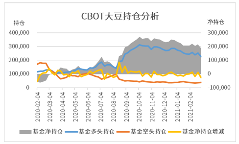 美豆多头势力继续减弱。CFTC的持仓数据显示,截至3月2日的一周,CFTC管理基金在CBOT大豆期货和期权合约的多单为166,750手,减少15,481手;空单为11,189手,增加1,322手。总体净多单155,561手。作为对比,上周为净多单172,364手。