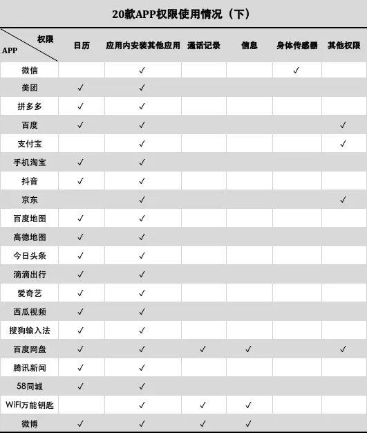 此外,在测试的20款APP中,仅有百度网盘的权限申请还包括了“读取通话记录”一项。