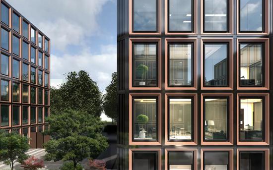 建筑师立刻飞到了纽约,仔细查看那幢楼的每一道线条。最终,我们用了更中国的方式——把黑色线条换成了金色线条,用黑色石材镶嵌金色铝材的方式,做出了镶金框的房子。