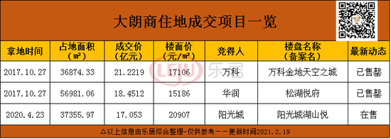 2020年4月23日,阳光城突围10余家房企以17亿斩+18%配建斩获距离本地块1公里的大朗镇长塘社区2020WR005地块,折合可售楼面价约20907元/㎡。
