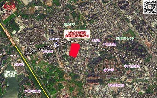 地块(2021WR007)位于大朗镇松佛路旁,毗邻松山湖风景区,距离在建中的地铁R1线大朗西站约400米。