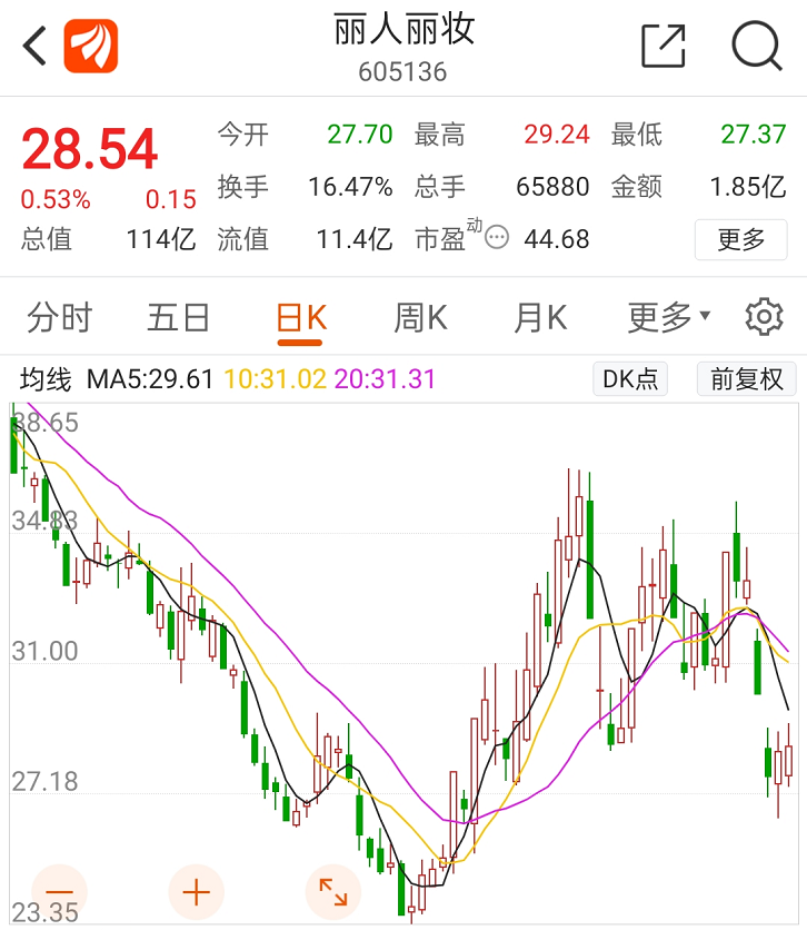 舆论危机愈演愈烈,直接影响到上市公司股价,在微博发布的第二天,丽人丽妆股价大幅低开后,迅速闪崩跌停。第3天盘中,其股价再度跌停,随后稍有反弹,最终收盘大跌超8%,2个交易日内的累计跌幅超17%,总市值蒸发超23亿元。