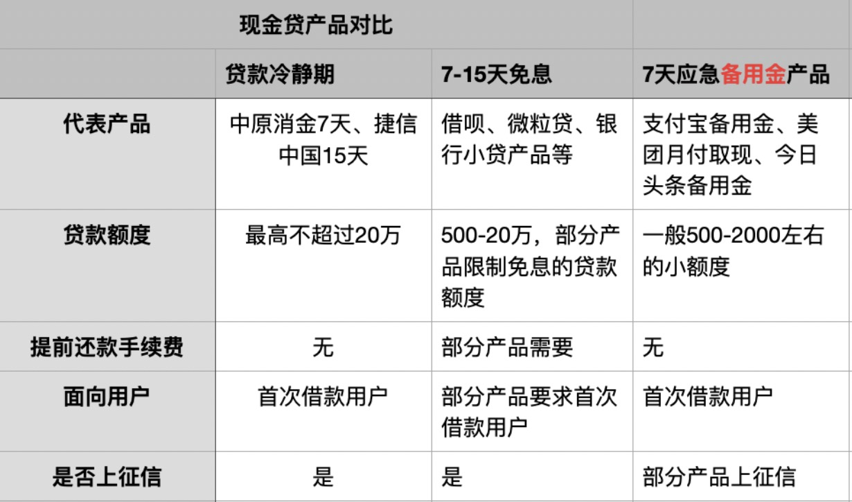 但经界面新闻记者对比发现,从产品规则来看,免息概念背后存在不少附加条件,这些条件包括用户贷款额度、提前还款手续费、以及用户门槛等需求。以目前最为流行的7-15天免息活动而言,在免息的需求下,部分产品会限制贷款额度。在蚂蚁借呗曾推出的10天免息活动中,曾存在3000的贷款额度限制。“备用金”概念下,信贷额度则普遍偏小,约在500元左右。