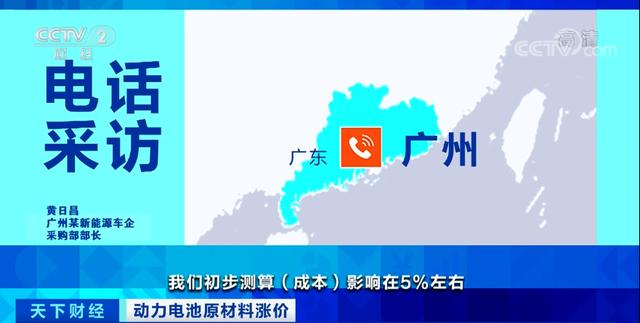 广州某新能源车企采购部部长 黄日昌:初步测算成本影响在5%左右。但是我们会通过新技术迭代升级、生产方式的创新以及优化供应链等其他途径,降低整车的制造成本,避免锂电池成本上升传递到终端,影响新能源车销售价格。
