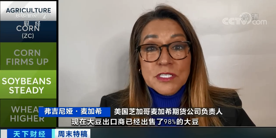 美国芝加哥麦加希期货公司负责人 弗吉尼娅•麦加希:值得注意的是,现在大豆出口商已经出售了98%的大豆,但他们还有6个月的时间才能收获新的大豆。