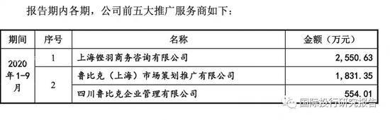 IPO说明书显示,2020年1-9月,有5家咨询公司担任了服务商,总共的费用为1.03亿人民币(不是桔子皮),根据IPO说明书对服务商选择的标准,服务商应该是有经验、有渠道等等。