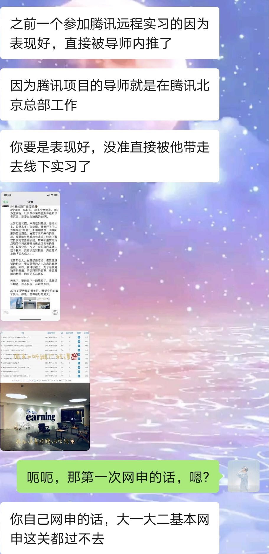 “现在很多实习,尤其是好的实习,都是靠内推……之前一个参加腾讯远程实习的,因为表现好,被导师直接内推(工作)了”,学长对于名企实习机会的描述让周林心动了。