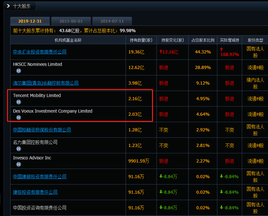 中金公司聚齐两家互联网巨头。2017年9月,宣布引入腾讯作为战略投资者,据当时中金公司公告,腾讯以每股13.8港元的价格认购了中金公司2.075亿股H股;2019年2月,阿里巴巴完成了对中金公司的入股,持有后者2.03亿股港股,占其已发行股份的4.84%。