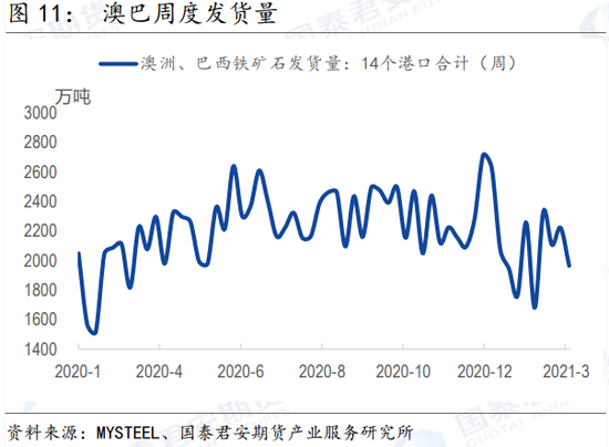 据Mysteel数据显示,截至上周,全球铁矿发运量为2789万吨,环比减少424.1万吨,澳大利亚巴西铁矿发运总量为2207.6万吨,环比减少199.6万吨;其中澳大利亚发往中国量为1187.1万吨,环比减少269.4万吨。