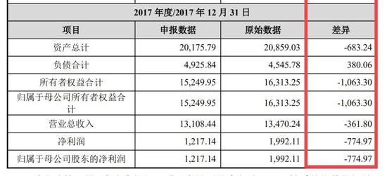 2017年度,上海泓博的本次申报数据和新三板年报数据同样存在数据打架情形,关于资产总计、负债合计、所有者权益合计、归母所有者权益合计、营业总收入、净利润、归母净利润7项数据均有出入。而且2017年的数据出入更大,最大出入超过1000万元。