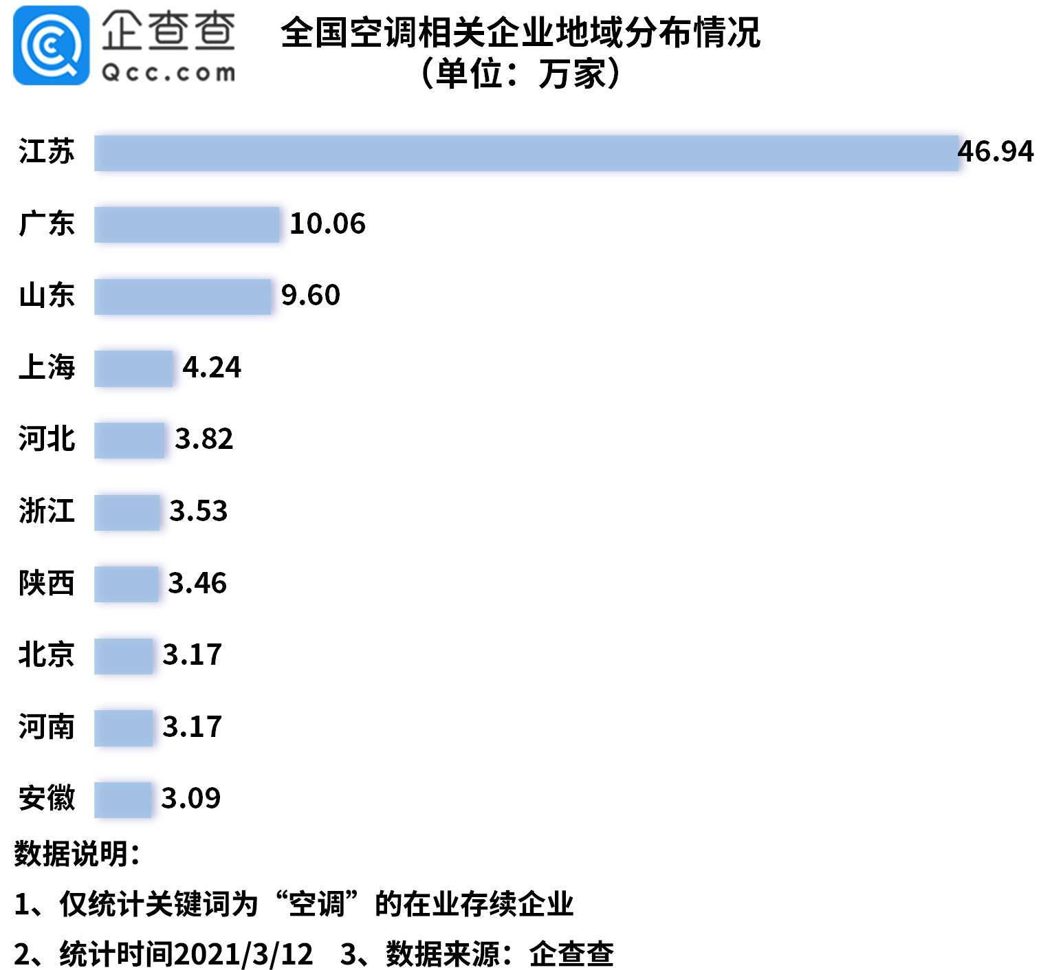 日前,格力董事长董明珠承诺不涨价的新闻,一时间圈粉无数。随着铜、铝等大宗原材料价格的大幅上涨,国内一些家电企业纷纷提高了销售价格。企查查数据显示,目前我国共有116.6万家空调相关企业,2020年新增企业34.03万家,同比增长18%。从地区分布来看,江苏省以46.94万家高居第一,占全国总量的40.3%,广东、山东分列二三名。