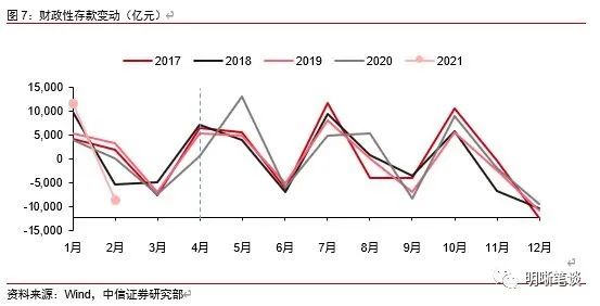 除了政府债券供给压力外,4月份确实存在流动性缺口,其中财政收支对流动性的影响将发生逆转。不同于3月是财政收入小月、财政支出大月导致的财政存款大幅下降,4月份是典型的财政收入大月+财政支出小月的组合,最终导致财政存款将面临较大规模增长。简单框算,3月财政或将带来近6000亿元的财政存款投放,4月财政则料将带来超7000亿的财政存款增长,成为冻结基础货币的主要因素。3月份银行资金面平稳有赖财政支出,4月份财政收支情况或将发生逆转,流动性面临较大缺口。