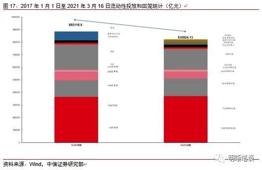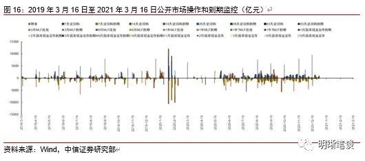 我们对市场流动性情况进行跟踪,观测2017年开年来至今流动性的“投与收”。增量方面,我们根据逆回购、SLF、MLF等央行公开市场操作、国库现金定存等规模计算总投放量;减量方面,我们根据2020年12月对比2016年12月M0累计增加16010.66亿元,外汇占款累计下降8117.16亿元、财政存款累计增加9868.66亿元,粗略估计通过居民取现、外占下降和税收流失的流动性,并考虑公开市场操作到期情况,计算每日流动性减少总量。同时,我们对公开市场操作到期情况进行监控。