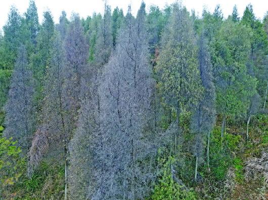 后哨村周边的部分树木已经干枯死亡。