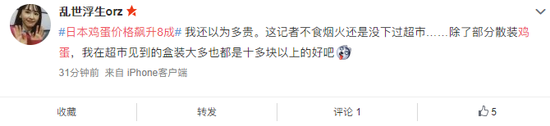 据央视财经,近日日本东京市内的一家超市里,很多人告诉记者,最近来逛超市有一个很明显的感觉就是鸡蛋价格变贵了。比如一盒10只装的鸡蛋,今天在这家超市里的售价是220日元,约合人民币14元,比上个月贵了40日元。