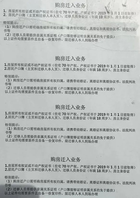 3月16日,记者从三河市公安局人口管理大队贴出的公告中看到,持有房屋所有权证或不动产权证书(70年产权、产权证书于2019年1月1日前取得)即可办理迁入业务。