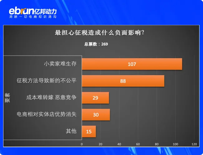 在亿邦进行的调查中,270位从业者之中,最担心全面征税后小卖家难以生存的比例高达40%。