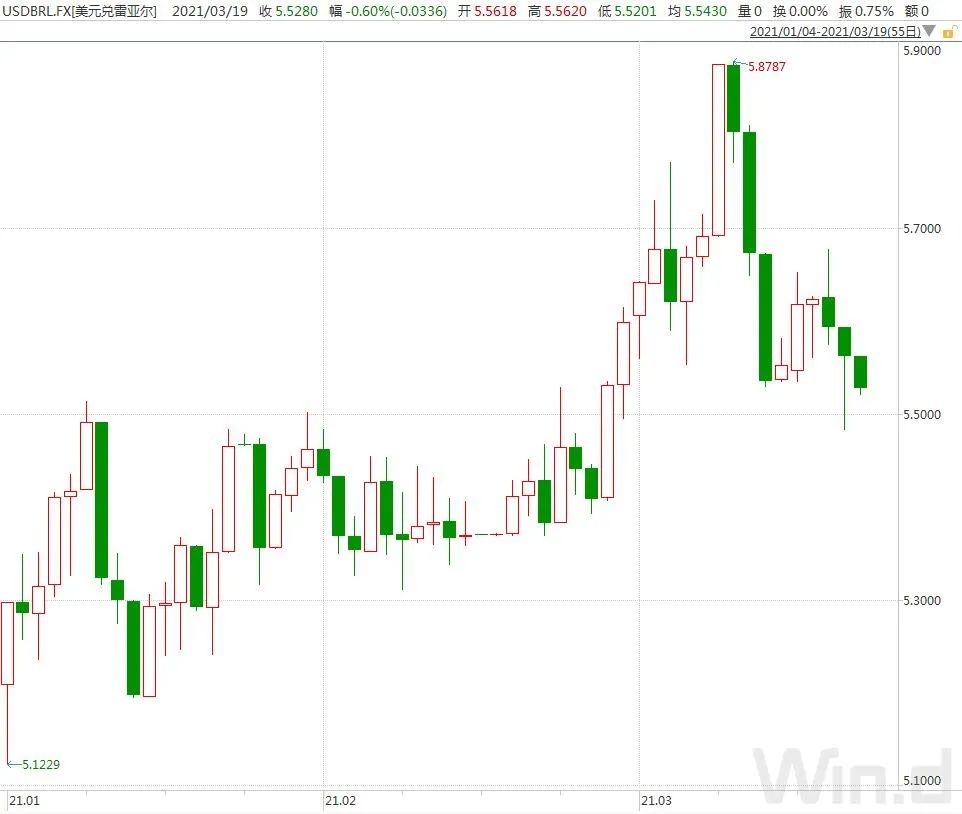 3月17日,巴西中央银行宣布,将基准利率上调75个基点,从2%升至2.75%。这是巴西央行自2015年7月以来首次加息。加息幅度也高于经济学家普遍预期的加息50个基点至2.5%。巴西央行货币政策委员会称,在5月份的下一次会议上,将再次加息相同的幅度,除非通胀预测或风险平衡出现重大变化。