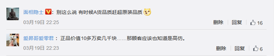 对此,有网友评论称,正品价值10多万卖几千块……那顾客应该也知道是高仿。