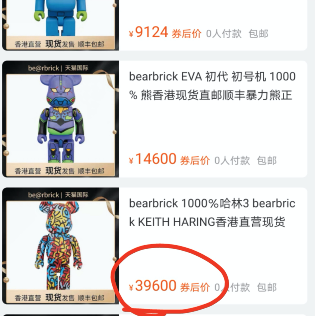 以2021年新推出的梵高博物馆联名的积木熊为例,一只1000%规格的积木熊在日本官网上的发售价格为48000日元,合人民币3000元左右,但是国内的价格炒到近万元。